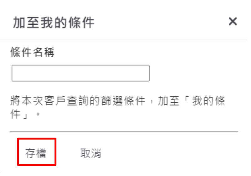 3. 為您的條件命名,儲存後即完成設定【我的條件】。