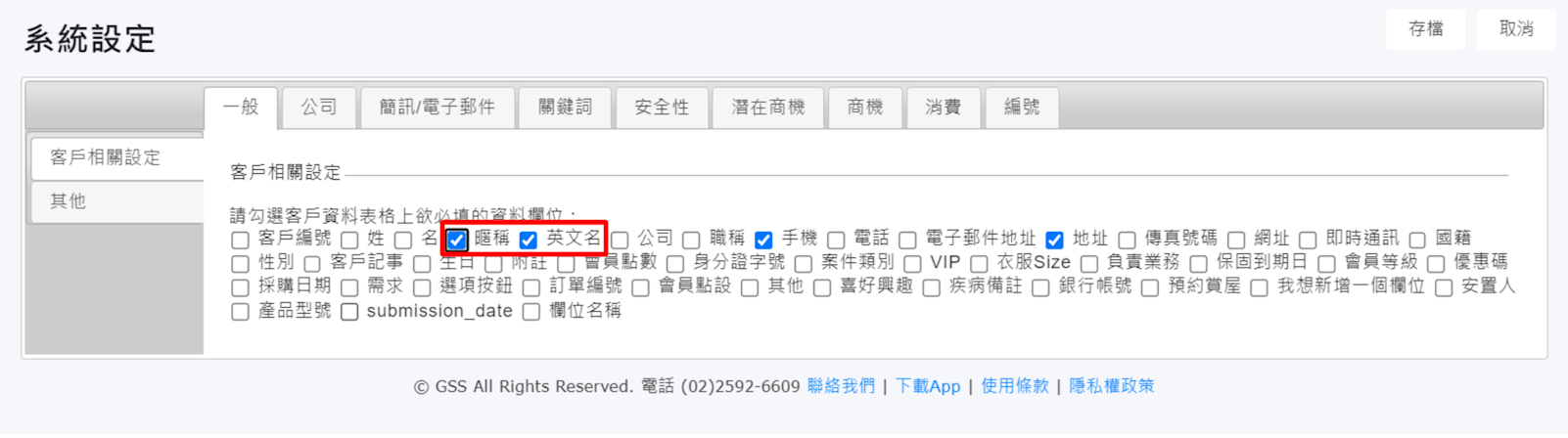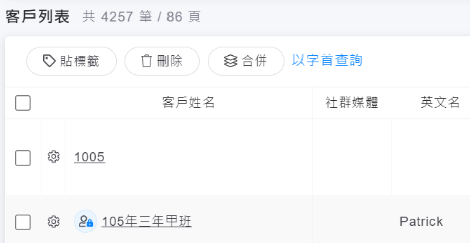 請於【管理>系統>系統設定>一般】勾選客戶相關設定,存檔後,列表即可顯示暱稱與英文名,並且提供資料排序功能,管理上更為方便。