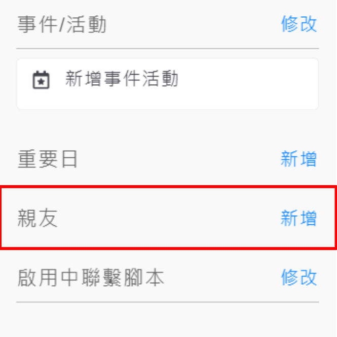 1. 請至客戶資料頁面中,右下方的【親友>新增】。