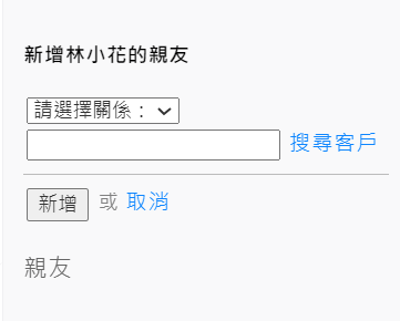 *提醒:設定前,請確定親友已經是系統中的一筆客戶資料,若不是,請先將親友新增為客戶。