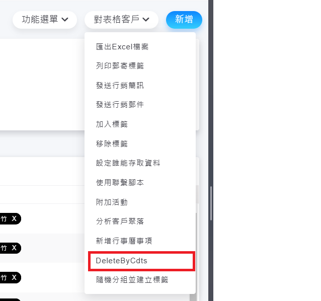 這項功能並非系統原有功能,如需使用大量刪除客戶這項功能,需來信申請