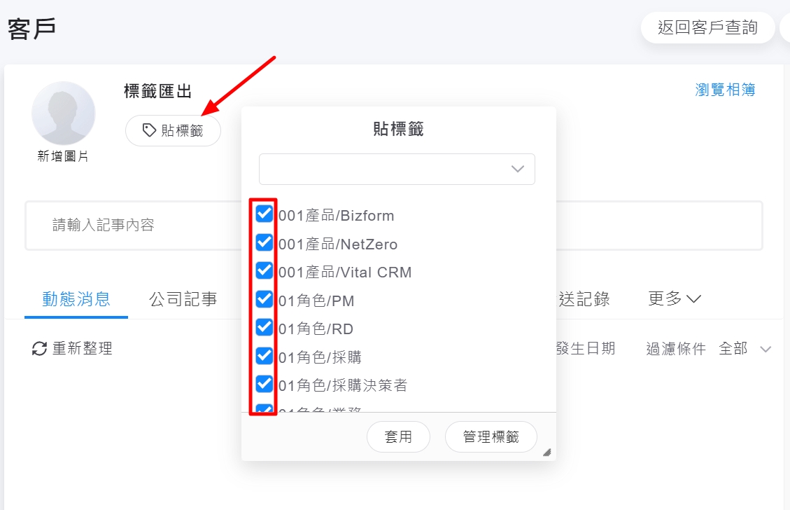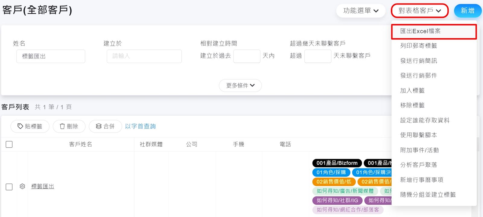 2. 新增完畢,在假客戶身上貼上欲匯出的標籤。