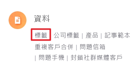1. 由左側功能列【管理】進入,選擇【資料>標籤】。