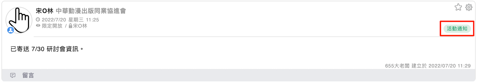 4. 儲存記事後,記事類別會顯示在記事中