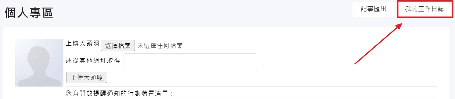 1. 請至系統右上方【個人專區>我的工作日誌】
