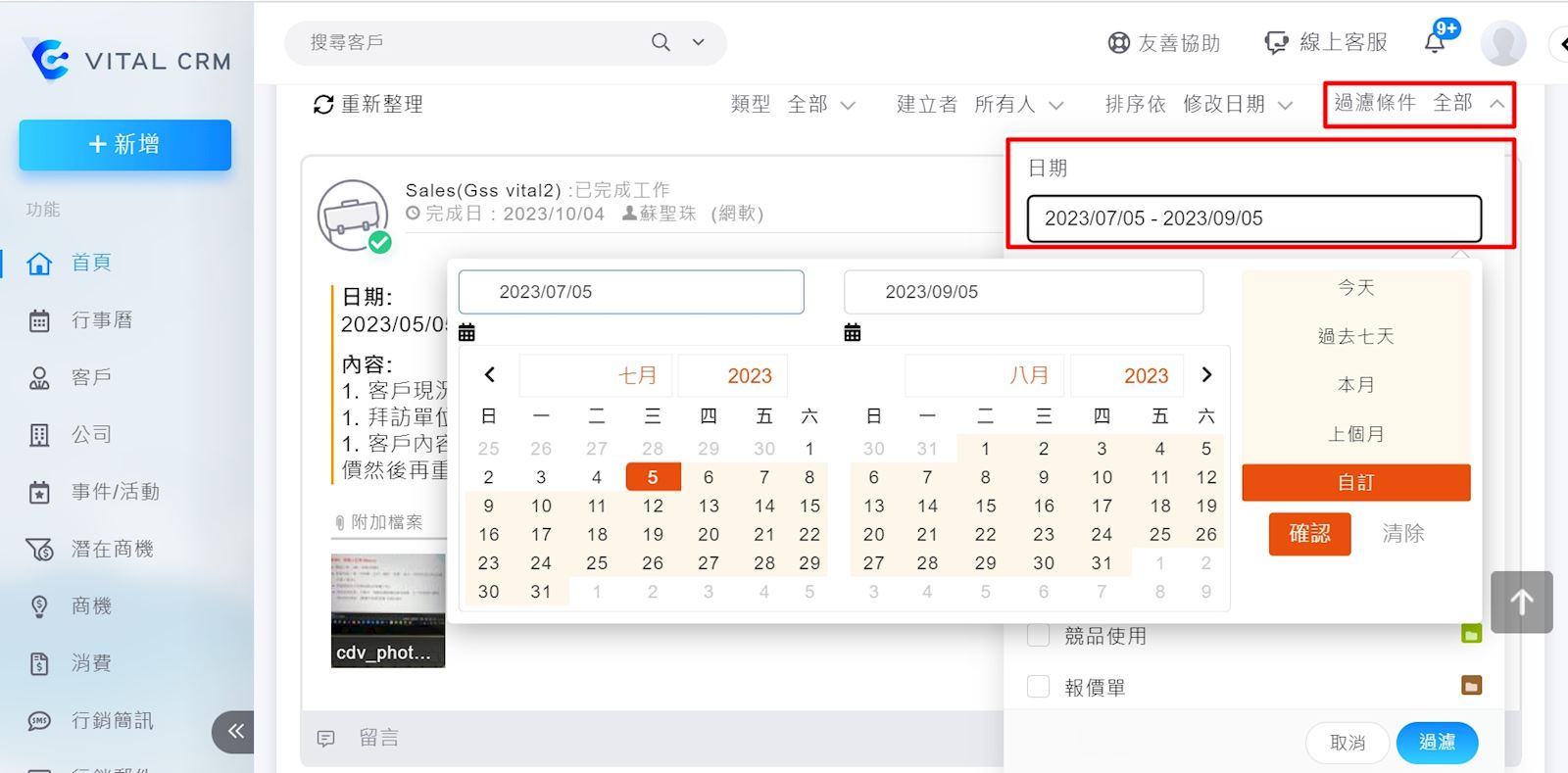 請在首頁記事右方的「過濾條件」中,自訂日期區間來過濾記事,查詢結果直接在首頁查看。