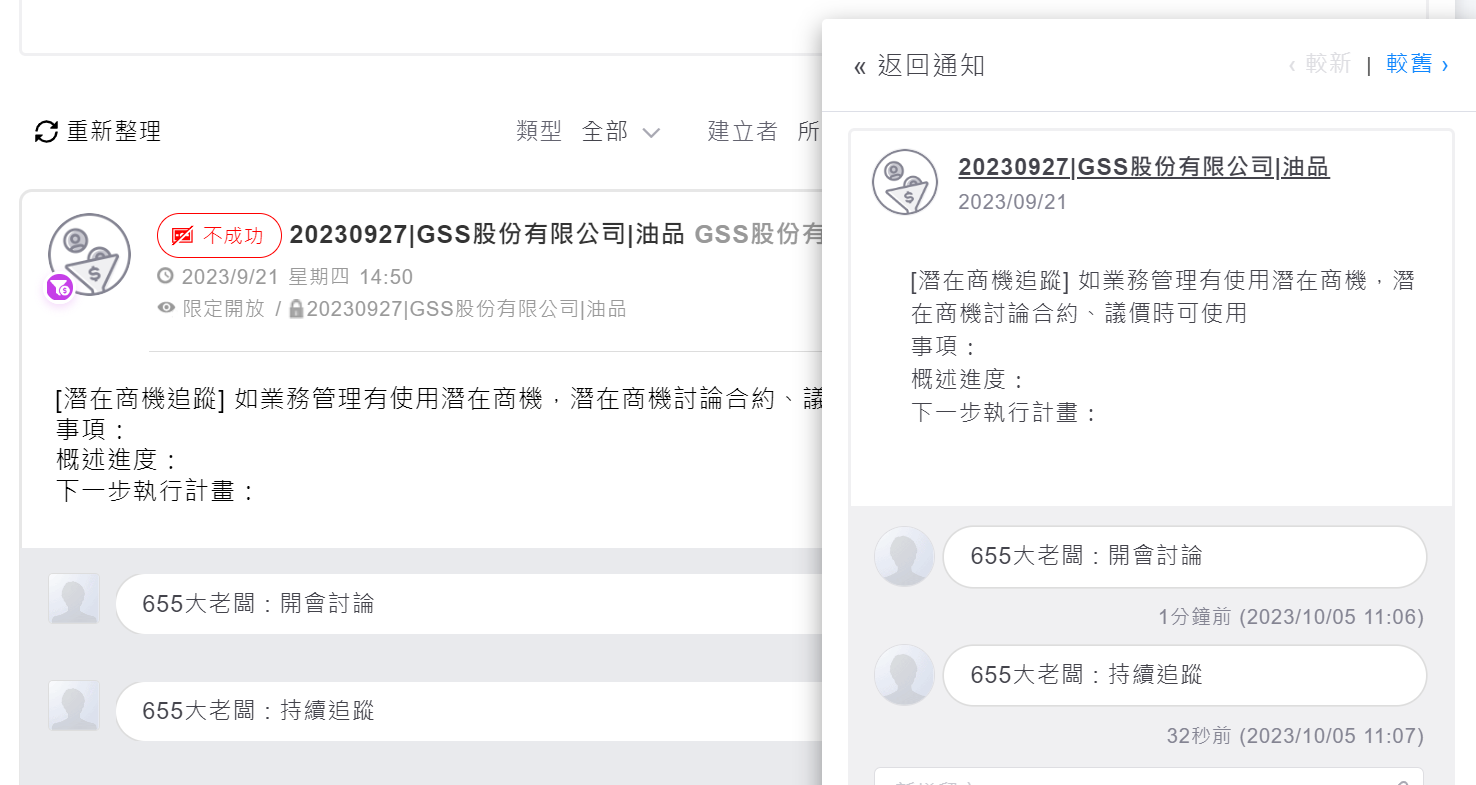 當記事有新的留言時,除了原先的記事的建立者與曾經參與留言的使用者,記事的關注者也會收到系統通知。