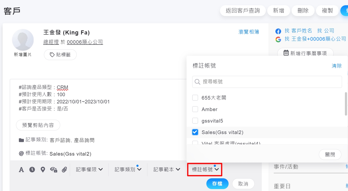 編輯記事時,可以標註其他使用者,被標註的帳號會立即收到記事標註通知。且該記事有後續留言時,被標註的帳號也會收到相關通知。