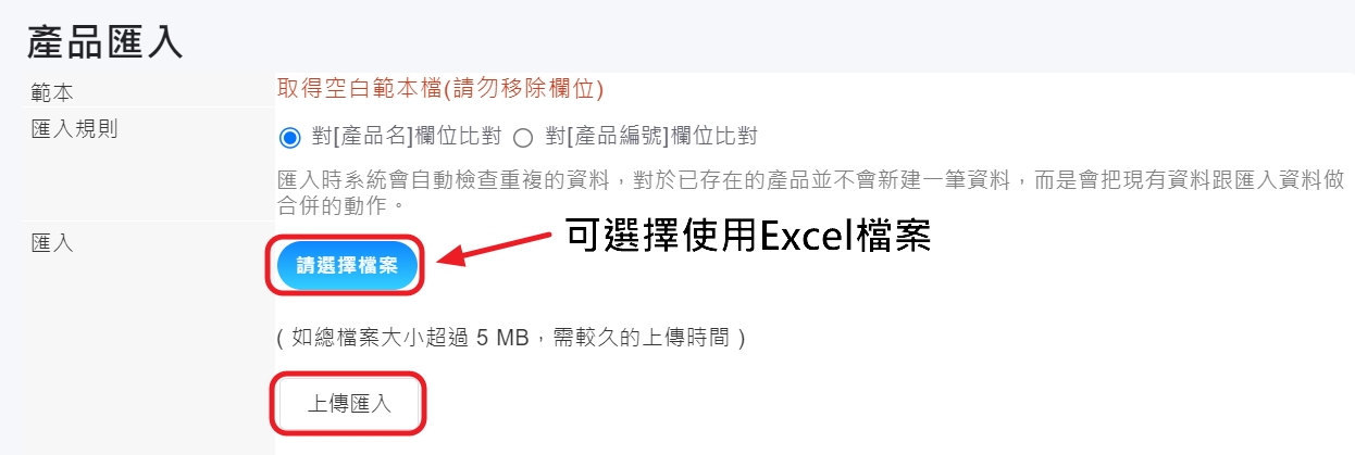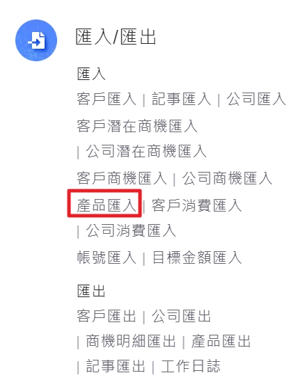 2.選擇【匯入∕匯出】欄位下方的【產品匯入】