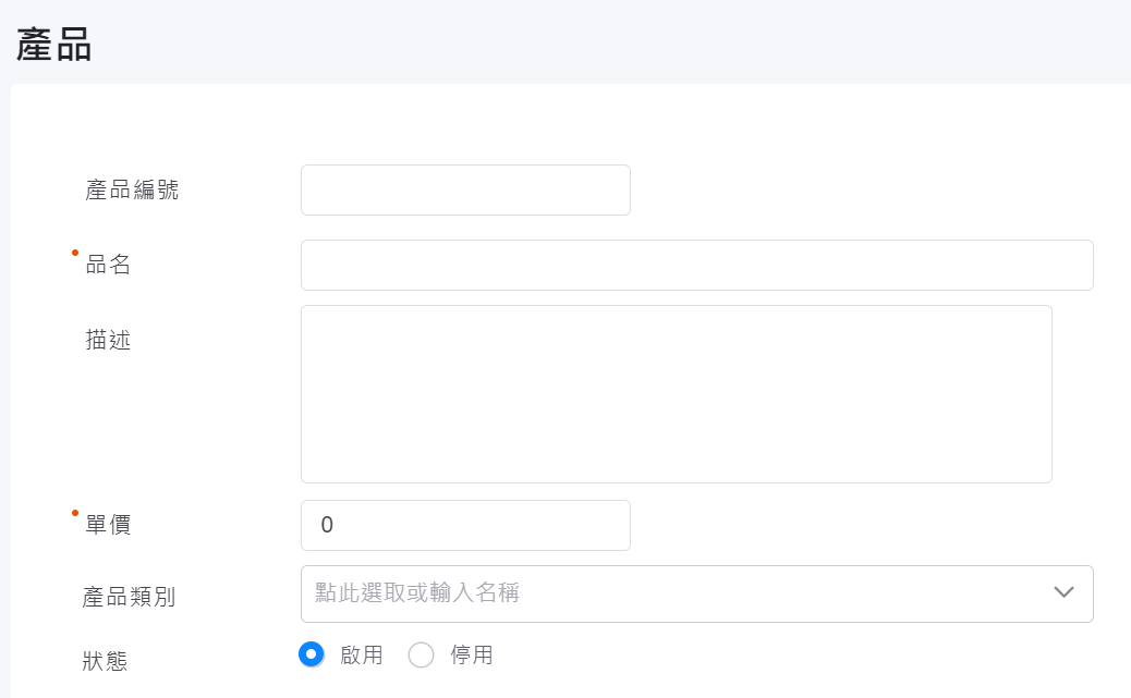 4.填寫產品資料,存檔即可完成(有標註紅點為必填項目)。