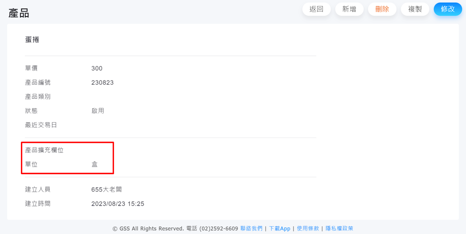 4. 於產品詳細資料頁面,也可以看到產品擴充欄位。