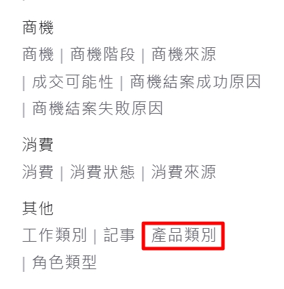 *改變產品類別將影響所有人的產品,建議您於修改前事先取得大家的共識。
