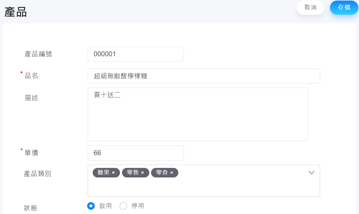 編輯產品資料時,可以一次指定多個產品類別(如下圖),