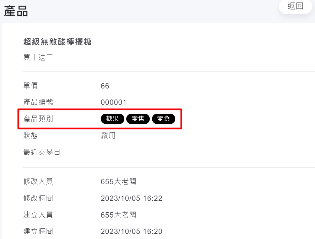 在產品詳細資料頁面,可以看到產品類別欄位。