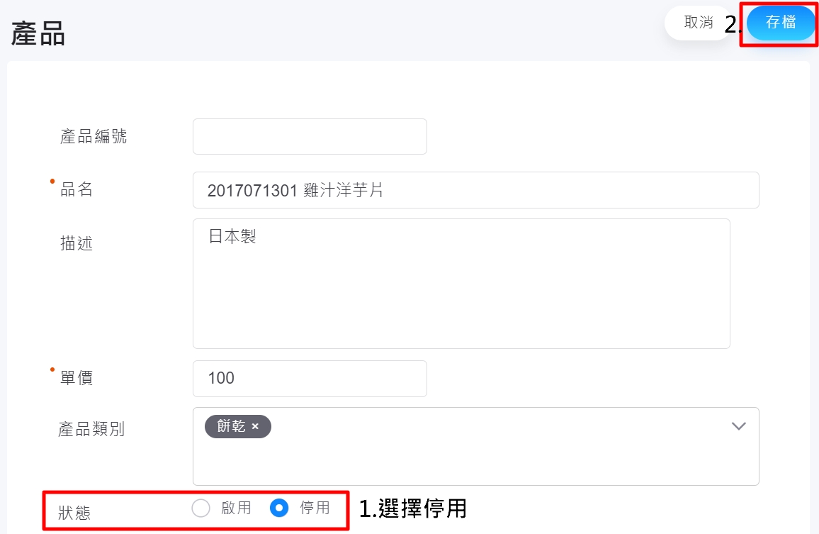 4.勾選下方【狀態】欄位的「停用」後存檔即可