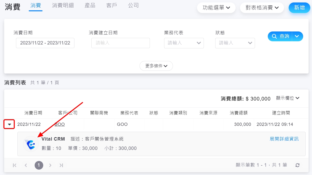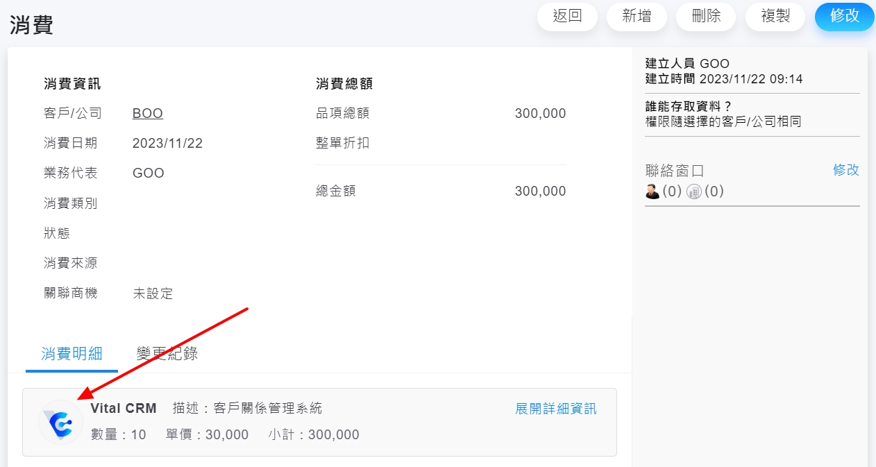 該設定同時影響消費列表內展開的明細資訊,以及商機詳細畫面內的商機明細。