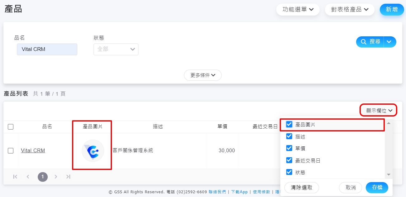 產品列表畫面可以選擇是否顯示產品圖片欄位。