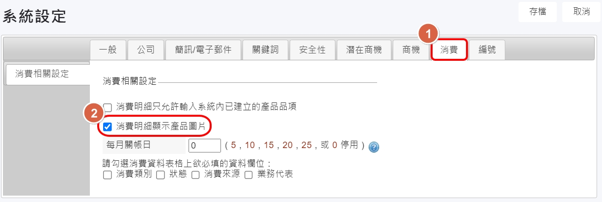 於「管理 > 系統設定」的消費頁籤內,可以設定是否於消費明細顯示產品圖片。