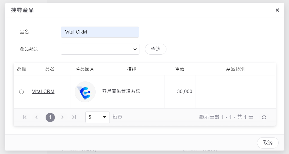 新增消費時,搜尋產品的畫面內可以看到產品圖片。