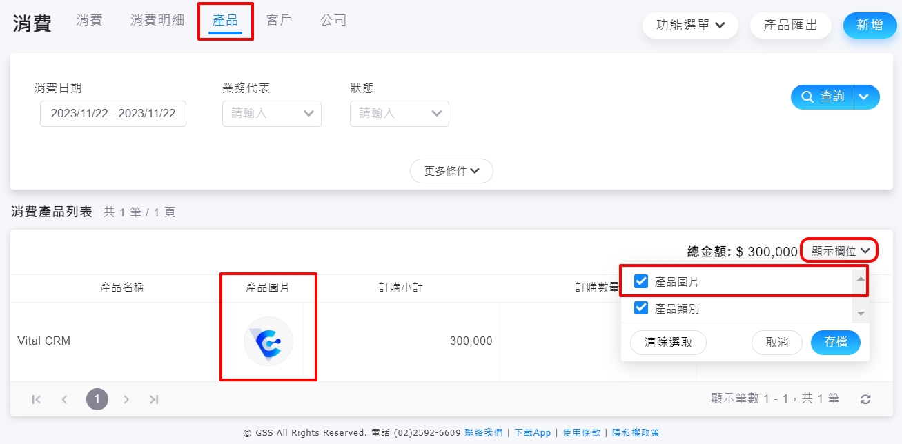 於「消費 > 產品」瀏覽產品的過往消費記錄時,也可以選擇是否顯示產品圖片欄位。