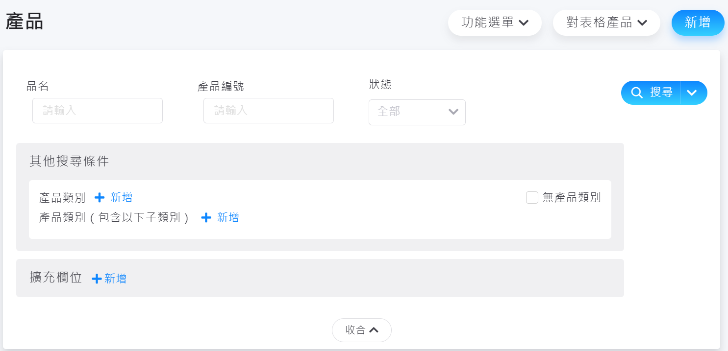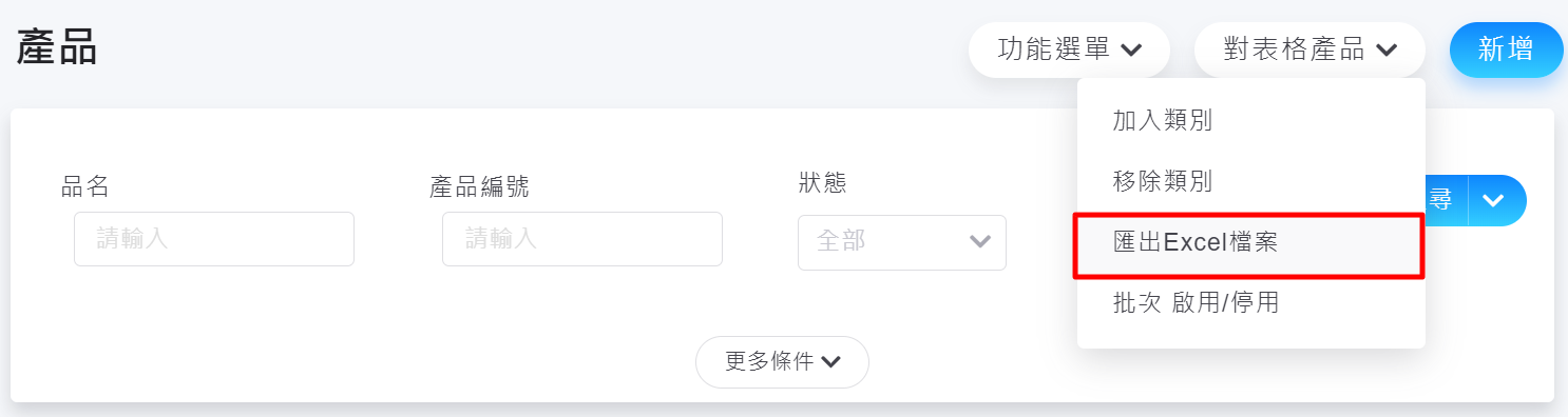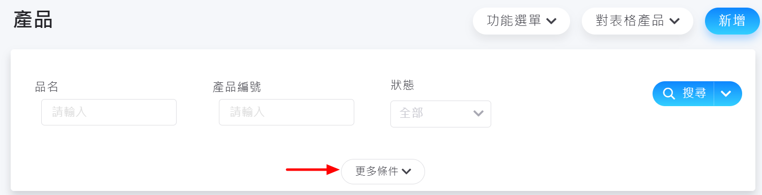 2. 展開「更多條件」,即可下指定條件查詢產品。