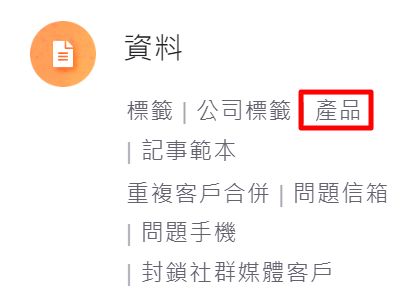 1. 請點選【管理>資料>產品】。