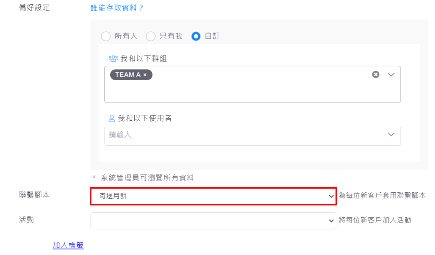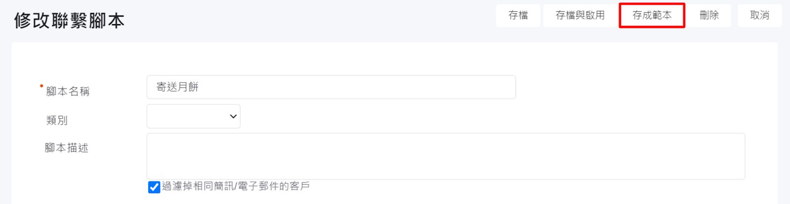 2.請注意,聯繫腳本必須【存成範本】,在客戶收集器上才可選擇。