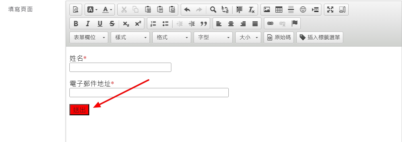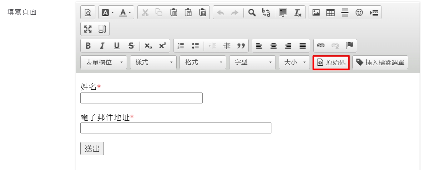 1. 打開客戶收集器後,在填寫頁面點選【原始碼】,如下圖所示: