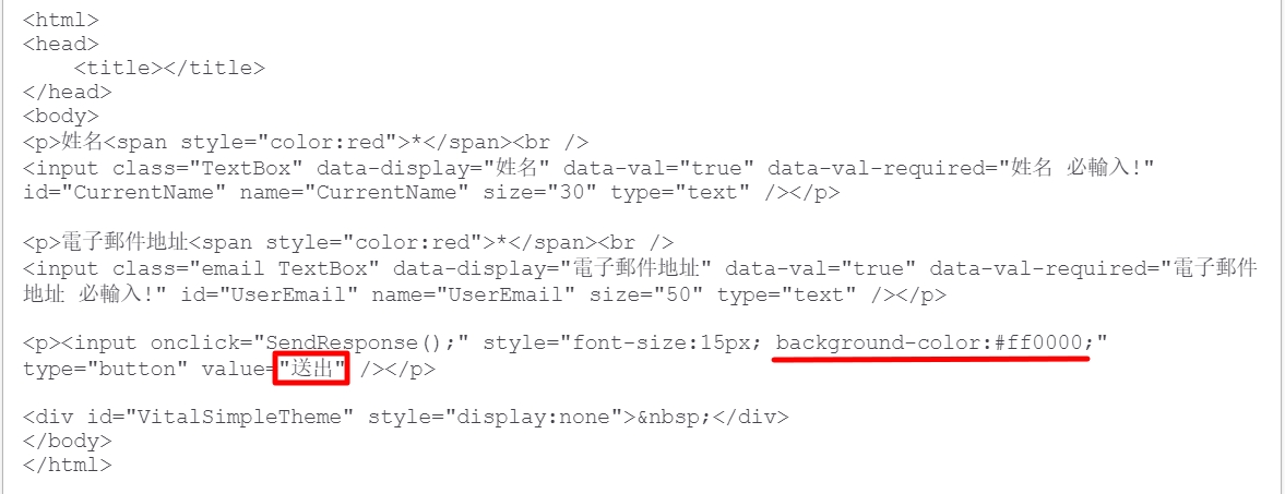 3. 修改完原始碼後,即可看見送出按鈕的背景色已被修改完成。