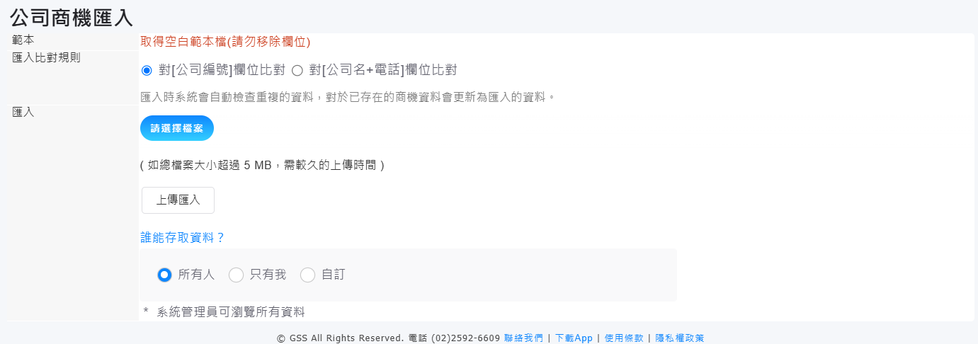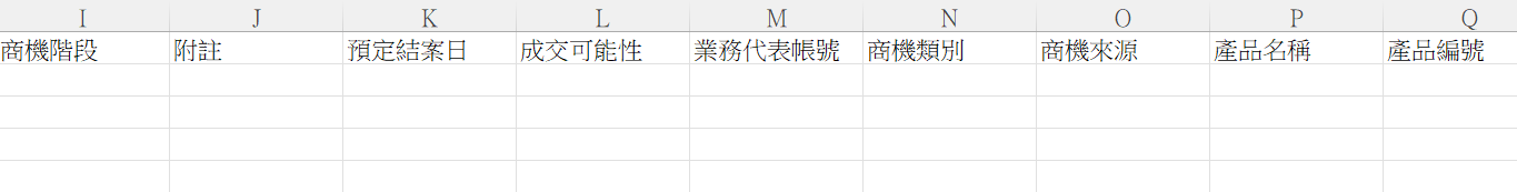 * 匯入公司商機資料,以下為必填欄位:公司名、電話、公司編號、商機名稱、預定結案日、