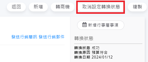這樣下次還有需要利用此潛在商機時,就可以再次轉商機。