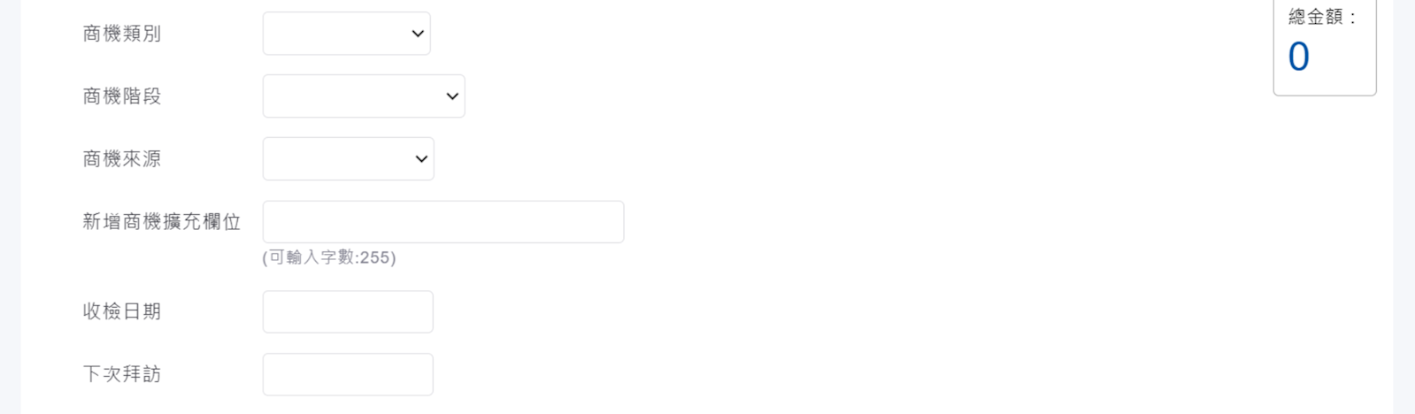 - 商機類別:如果公司的銷售案有根據產品別、銷售方向,有不同型態,可用類別區分