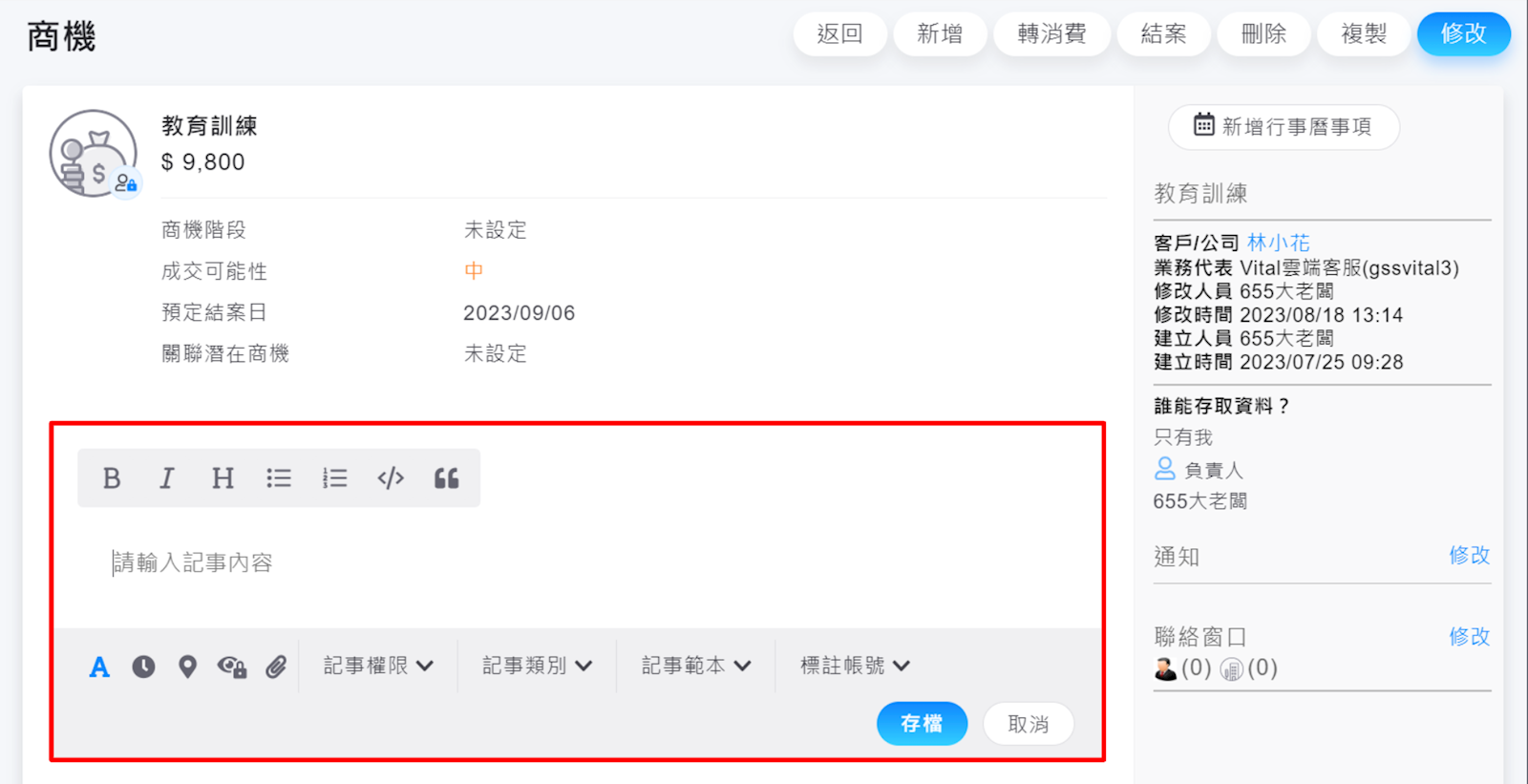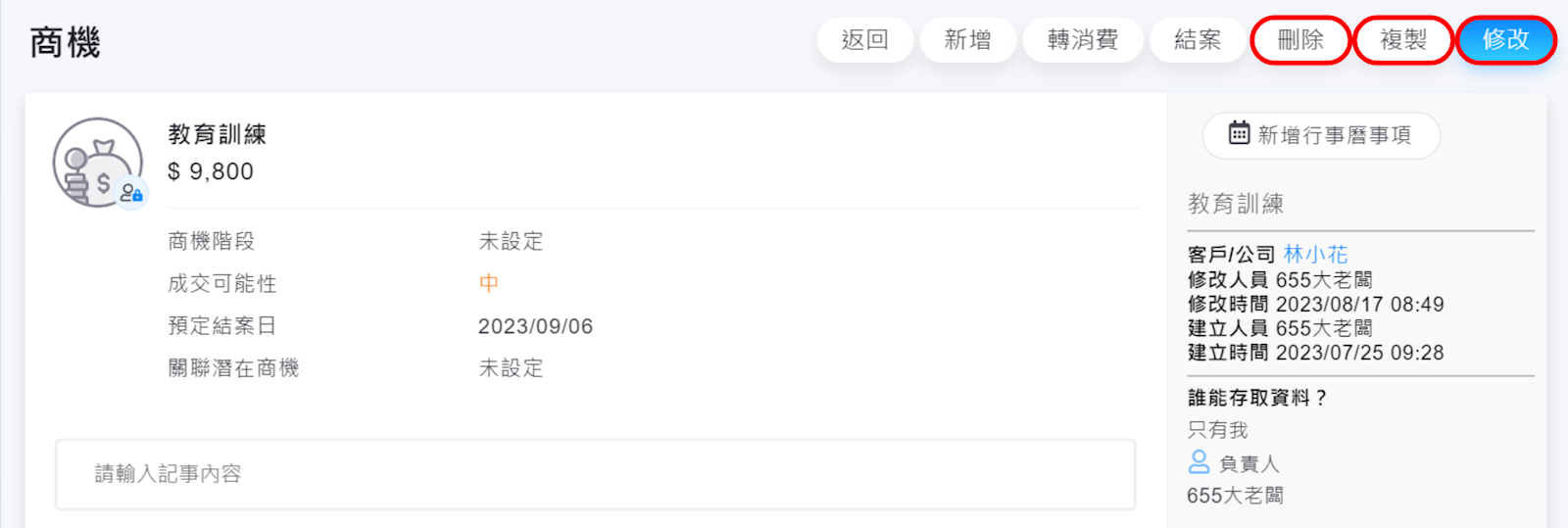 ※關於商機記事的操作,可以閱讀此篇文章,了解更詳細的內容。