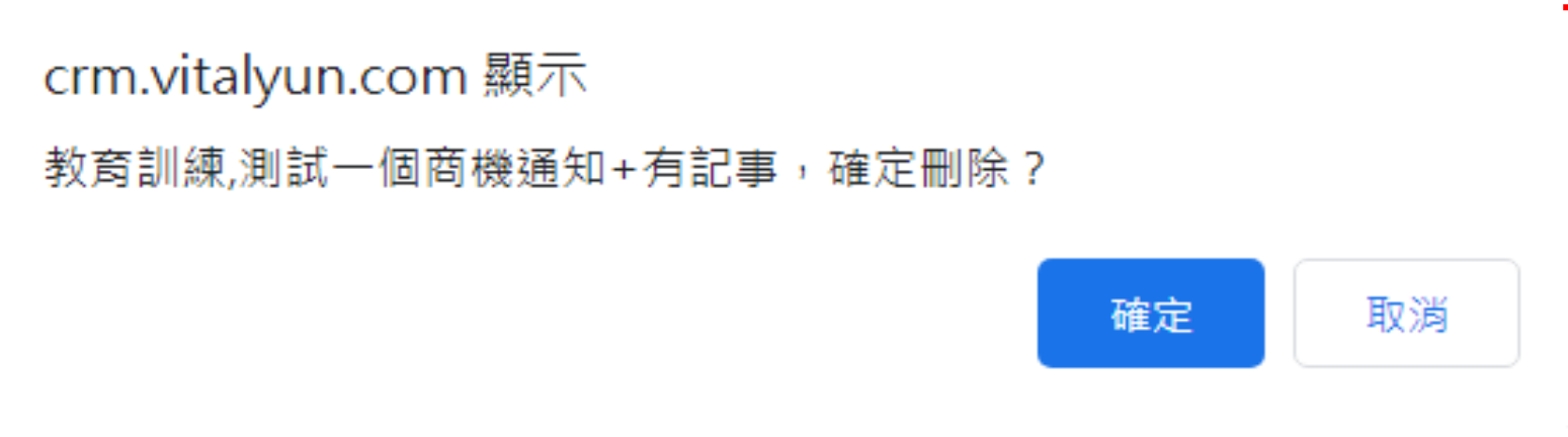 6. 若確定要刪除該商機,即可點選【確定】,將商機刪除。