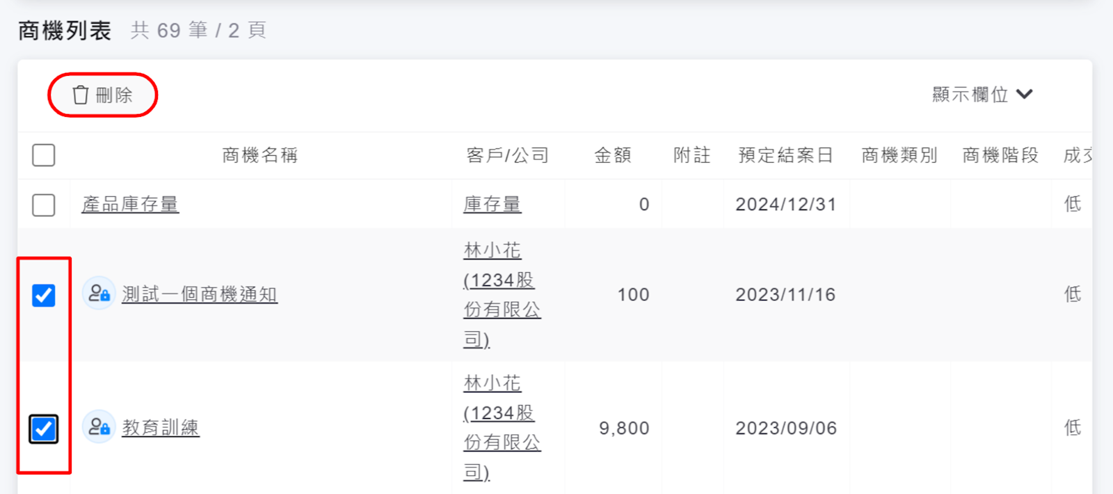 2. 請勾選欲刪除的商機。