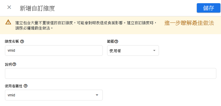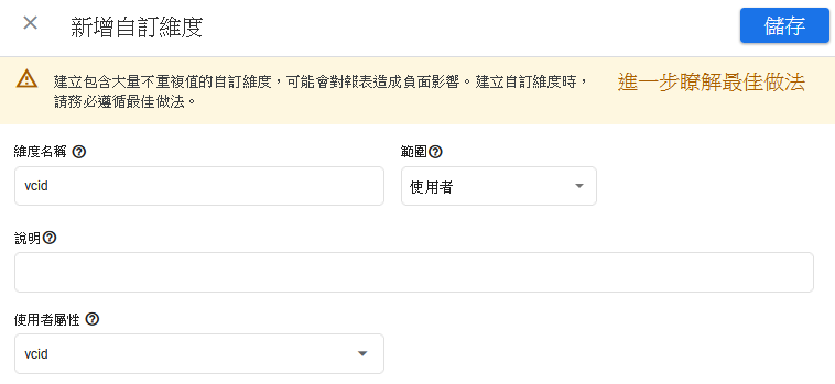 2. 新增vcid(客戶ID)和vmid(行銷郵件ID)為 Google Analytics中的自訂維度