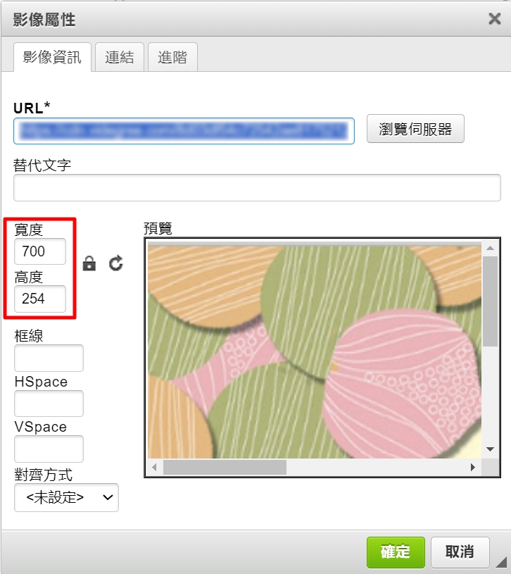 畫面上會展開視窗如下圖,請見畫紅色底線的地方,那邊會顯示圖片的尺寸。