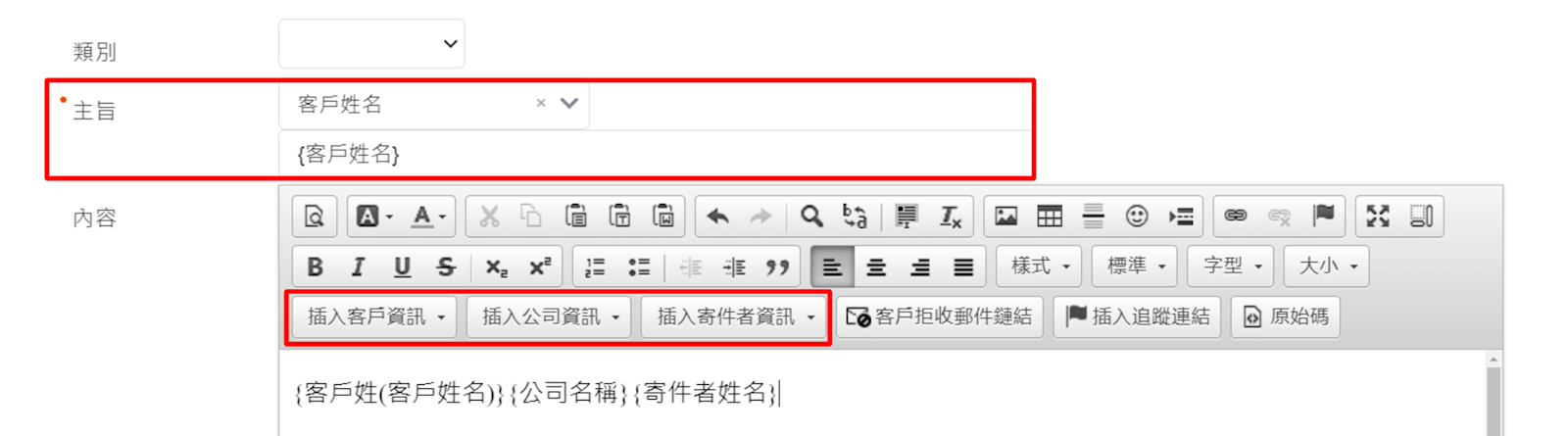 當您在Vital CRM中新增行銷簡訊及郵件時,可以插入客戶、公司等資訊欄位,系統會根據您的收件者名稱去改變信件中對客戶的稱謂、名號,以下將詳細說明: