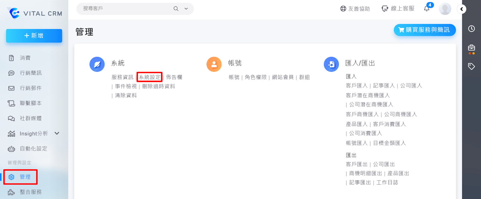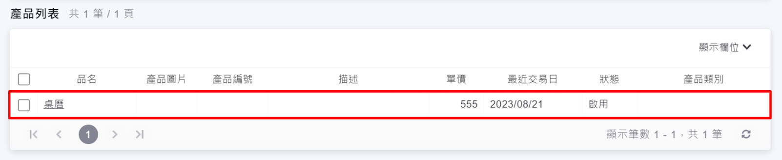 3. 新增消費後,您可於【管理>資料>產品】中查看您的產品是否已啟用。