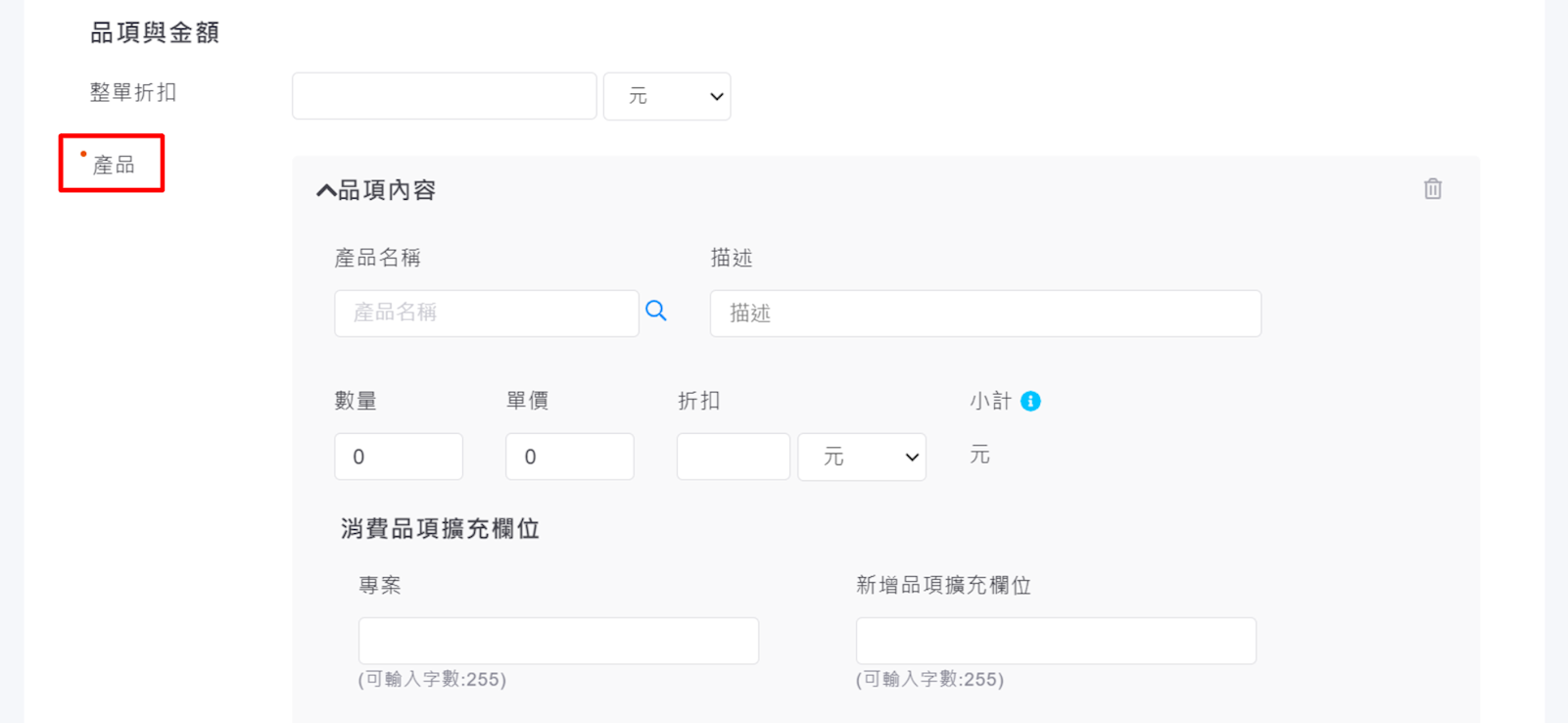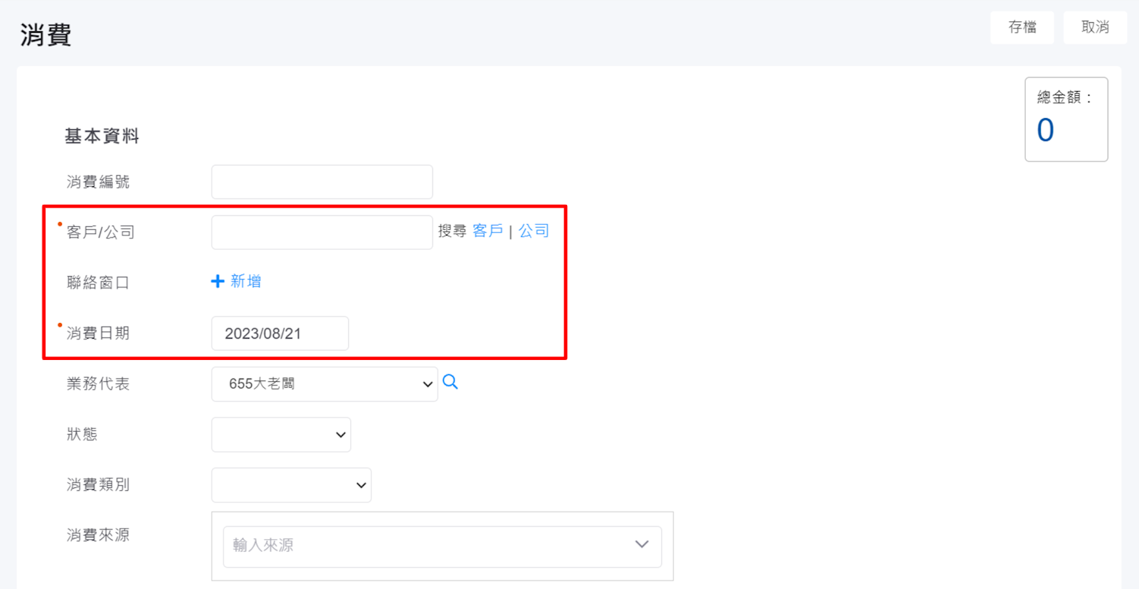 2. 輸入客戶消費紀錄。請注意,紅色圈圈為必填欄位。