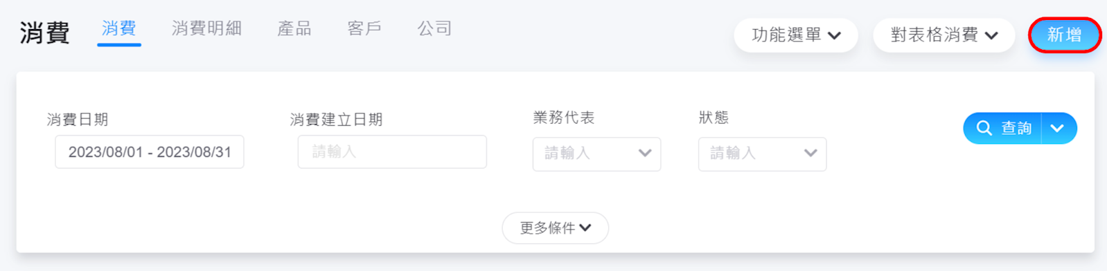 1. 請至列表左下方點選【消費>新增】按鈕。