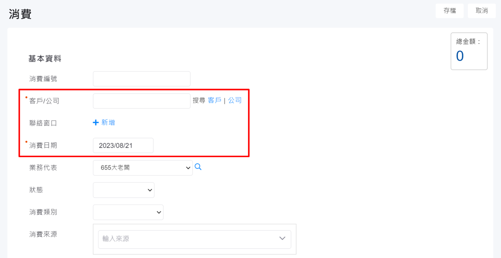 2. 輸入客戶消費紀錄。請注意,紅色*號為必填欄位。