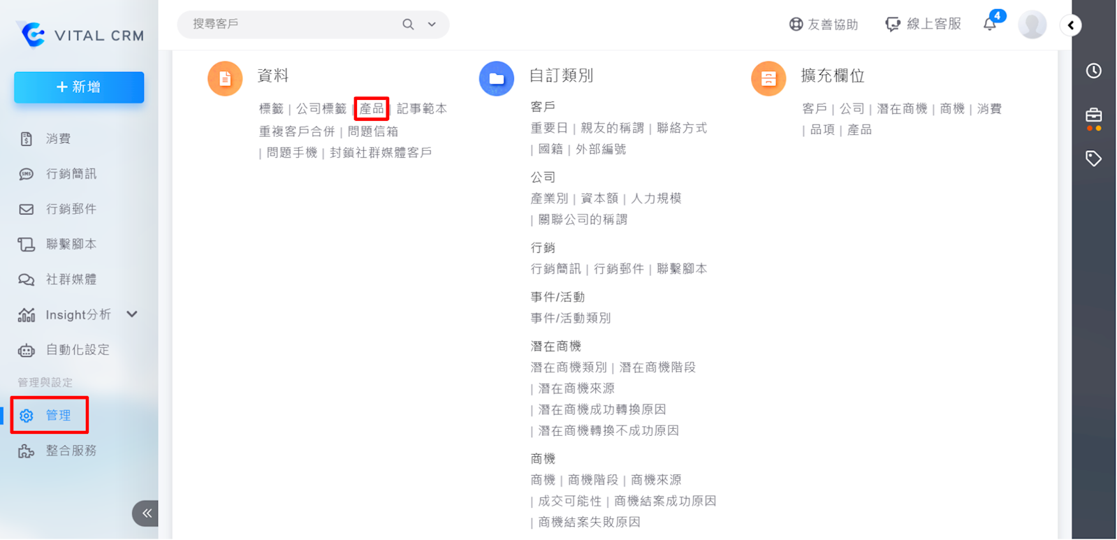 1. 請至列表左下方點選【消費>產品】,以開始進行產品銷售排行分析。