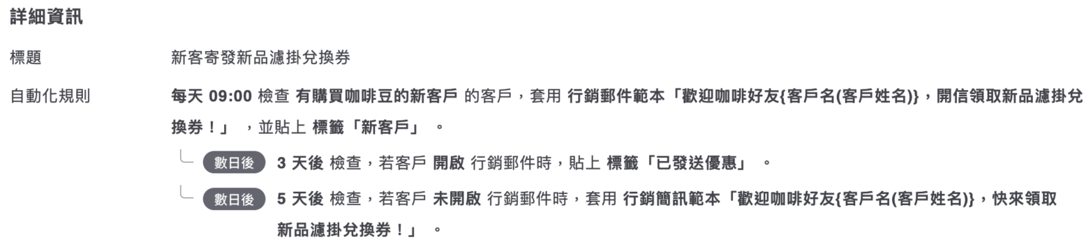 歷程二:3 天後檢查有開郵件的話,會貼標籤「已發送優惠」,扣 1 點。