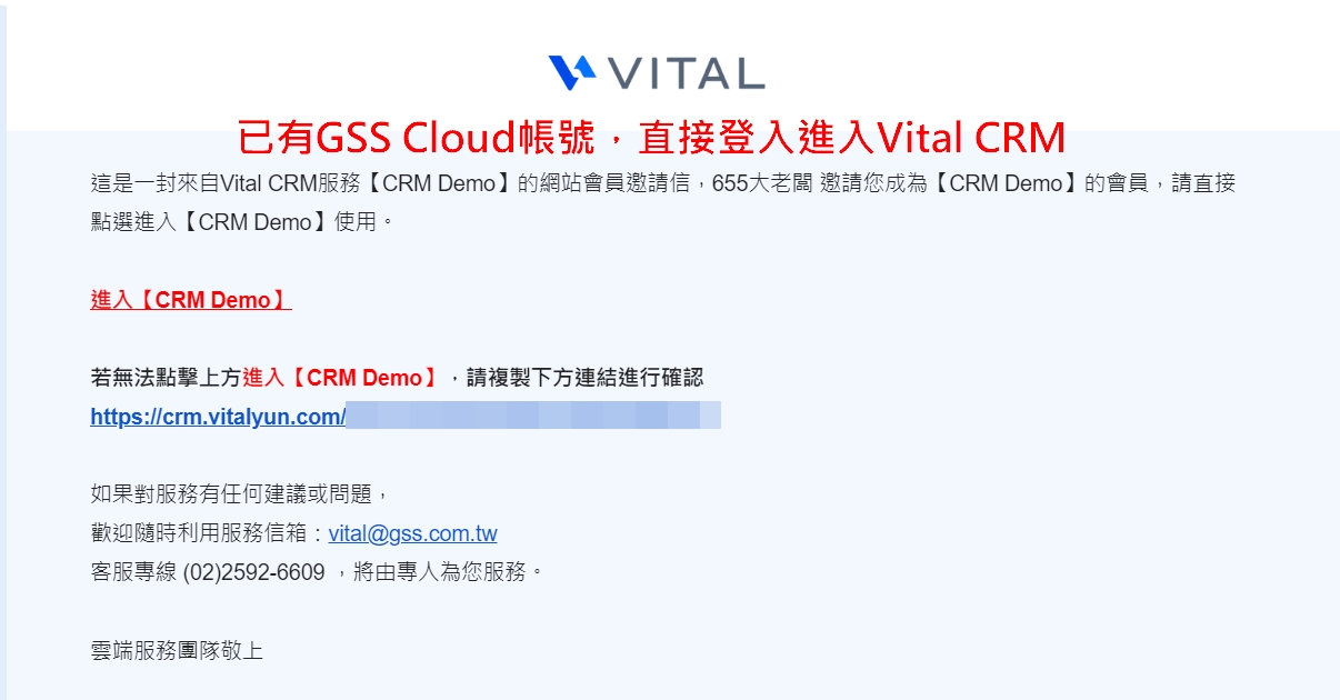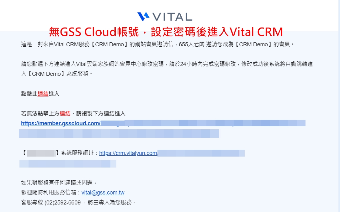 2. 若被邀請人已有GSS Cloud帳號,則會收到確認邀請信點擊啟用後可直接登錄進入服務;若被邀請人無GSS Cloud帳號,透過邀請信內連結設定密碼後,系統會再自動跳轉至服務。