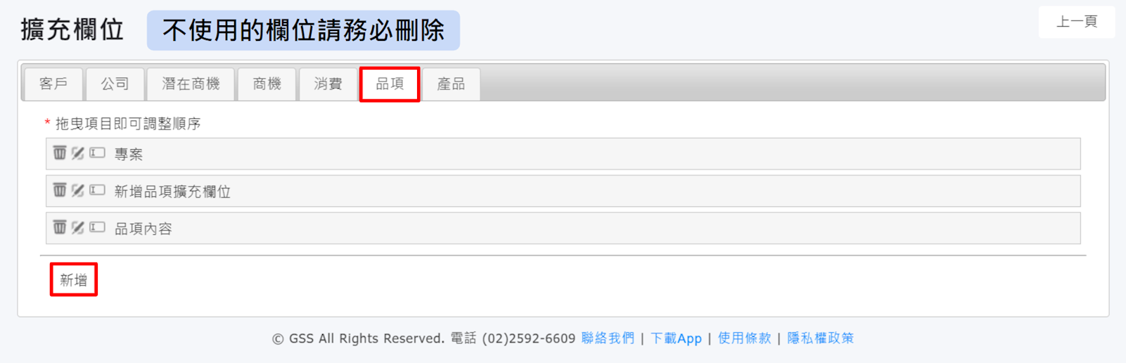 *沒有使用的擴充欄位請直接刪除,否則會一直顯示在新增消費的頁面上。