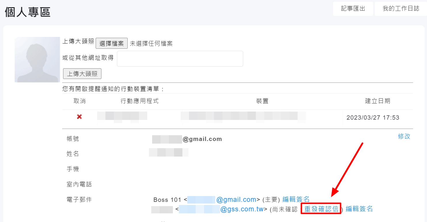 在【個人專區】中新增或修改電子郵件後,系統會寄送確認信至該電子郵件信箱中,請去信箱中收信並確認。如果沒有收到確認信,可以回到【個人專區】中點選「重發確認信」的按鈕,如果沒有看到「重發確認信」的按鈕,表示您已經驗證完成。