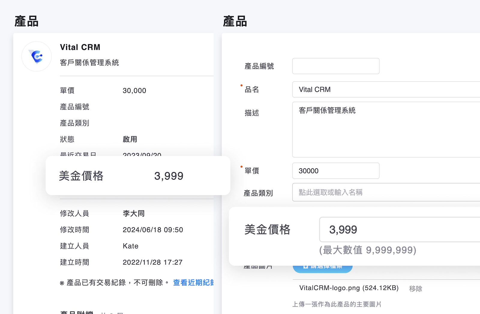 於管理畫面內設定各類資料可用的擴充欄位,當擴充欄位類型為「數字方塊」時,可以指定是否「顯示千分位」。