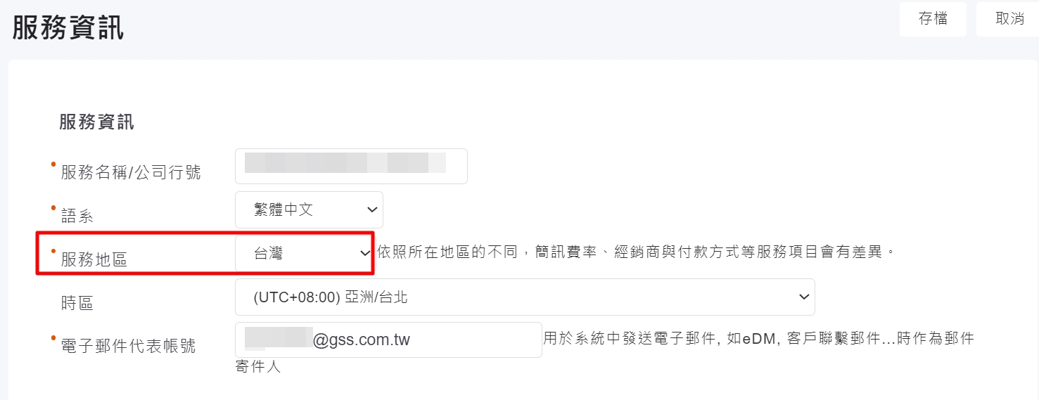 請您點擊【管理>服務資訊>修改】,將服務地區改成「台灣」,就能夠線上付款。