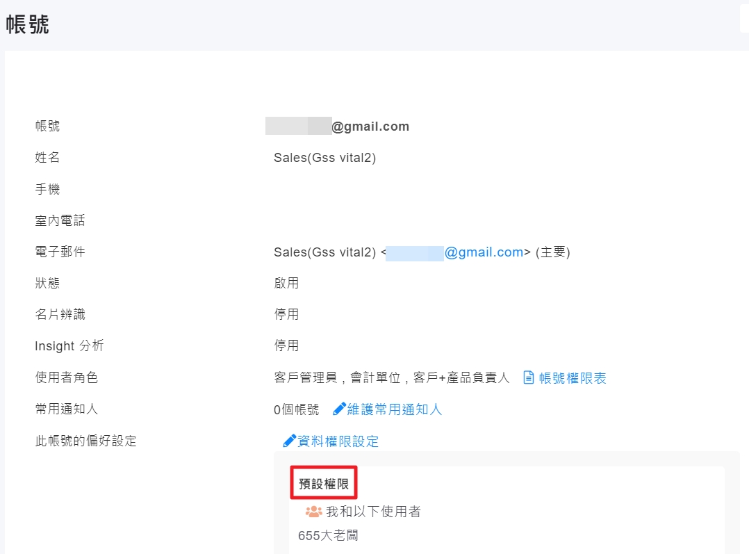 管理員於帳號資料頁面,可以查看個帳號的偏好設定內容。
